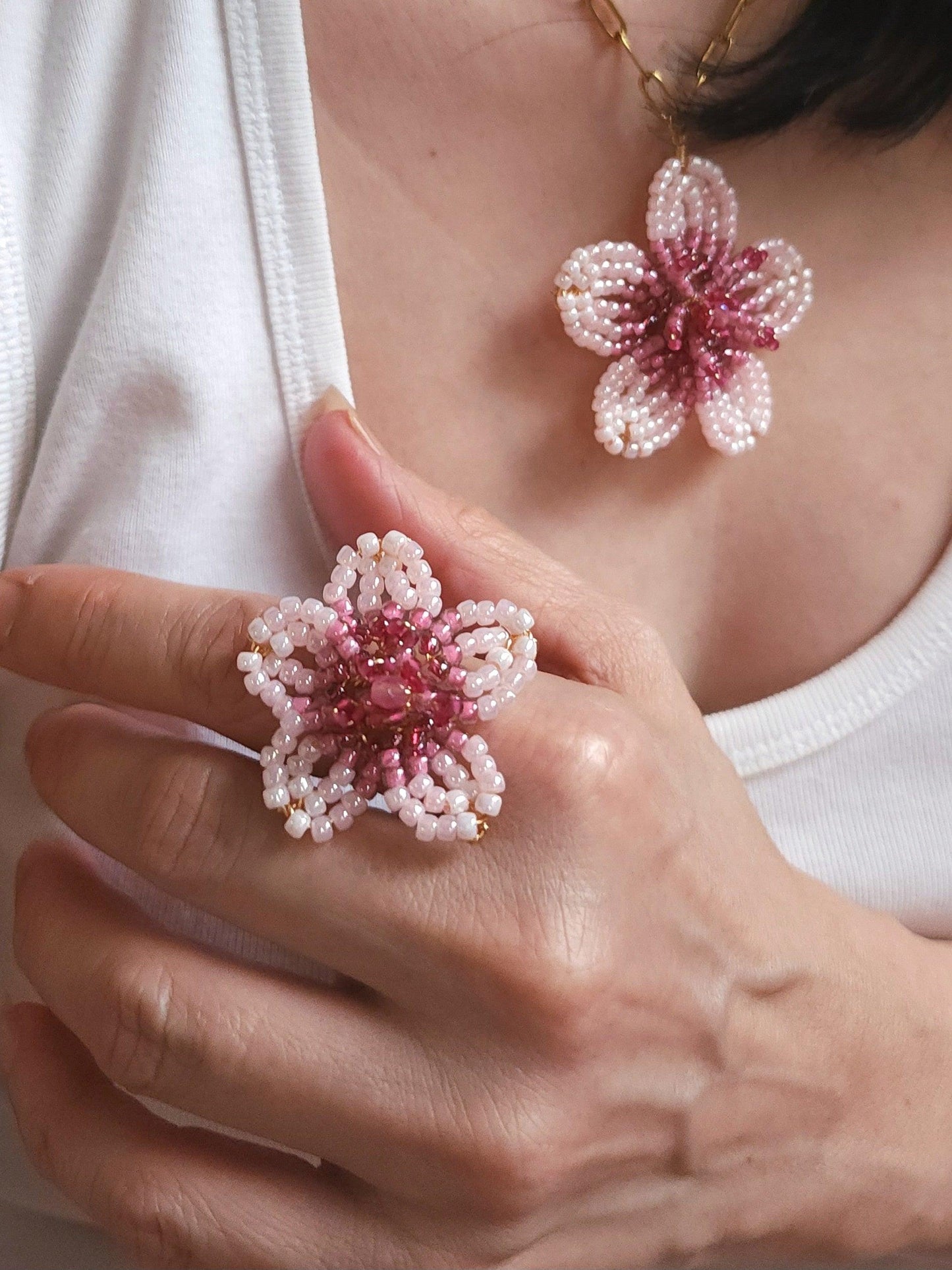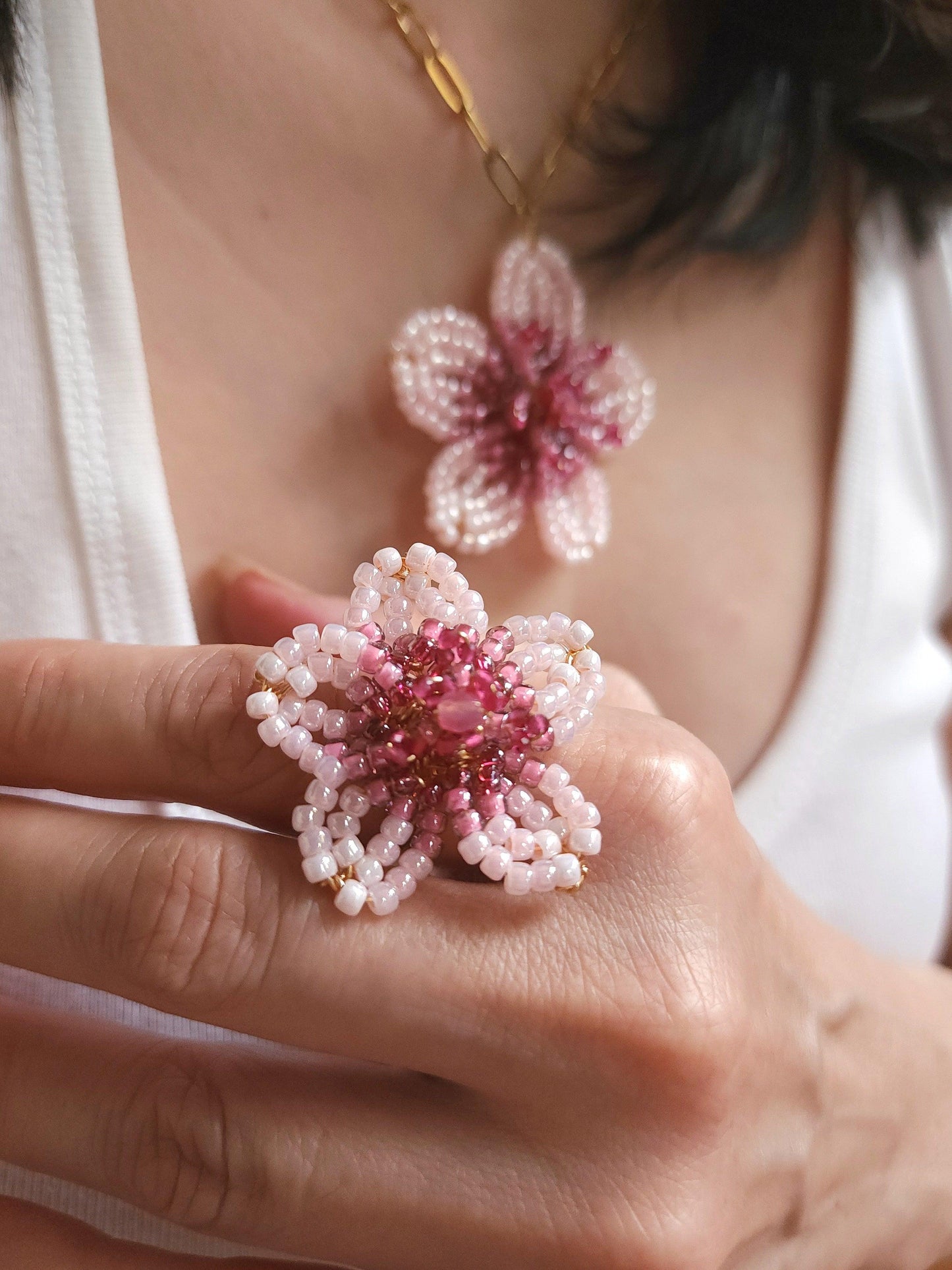 Discover the beauty of handmade French-beaded jewelry. Each piece features delicate, three-dimensional floral designs created with wire and tiny glass seed beads, shaped into petals and forming blooms that are great accessories to any wardrobe. Perfect for lovers of unique, romantic, and nature-inspired jewellery.