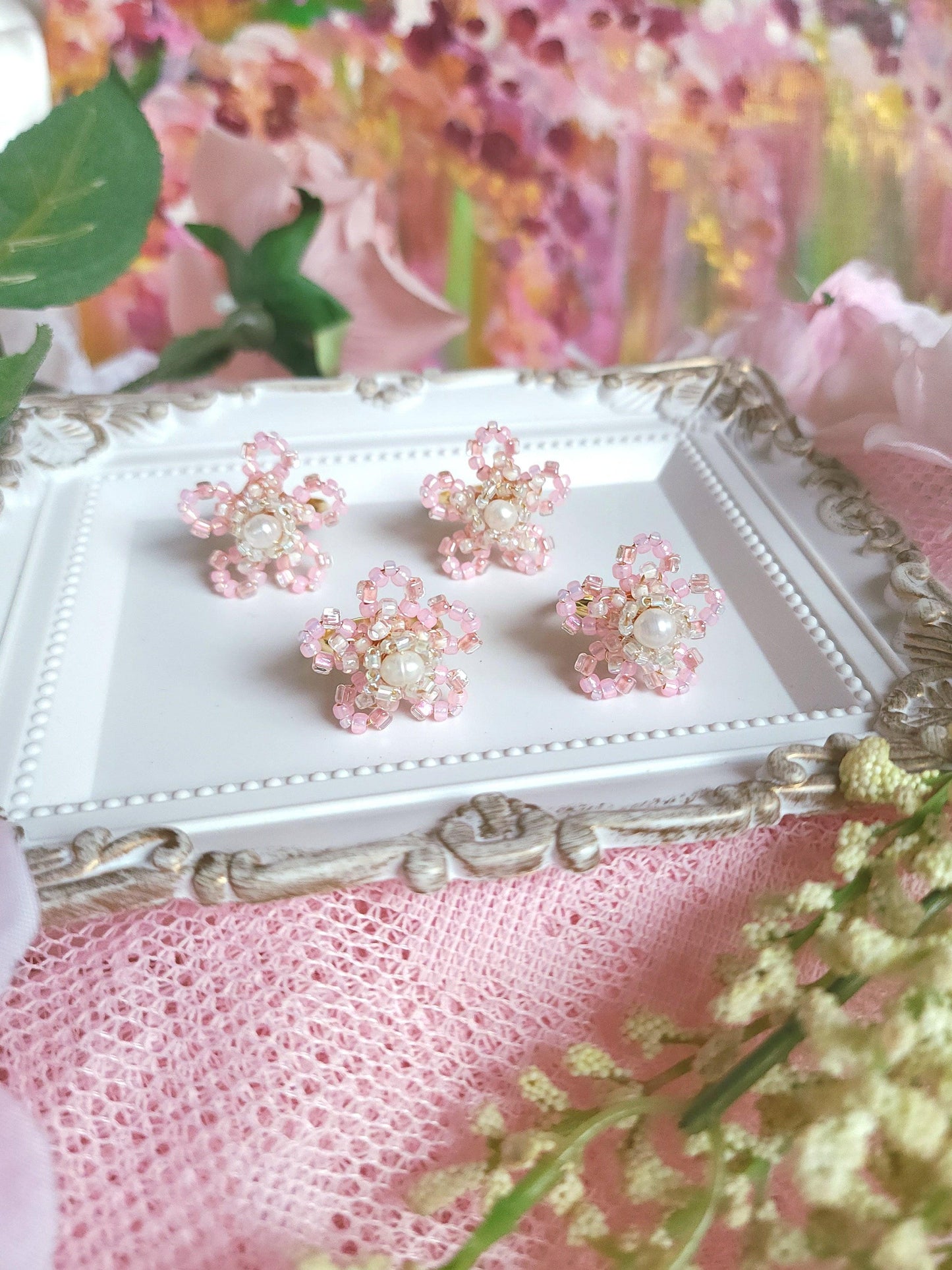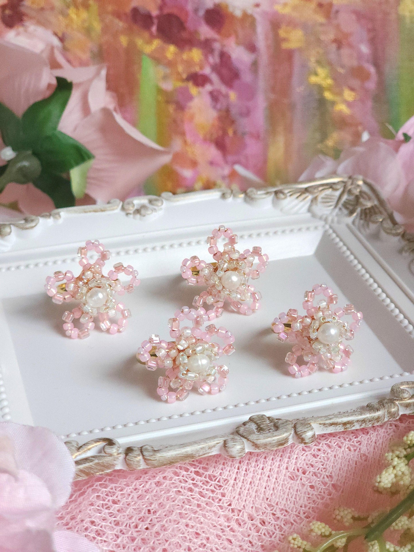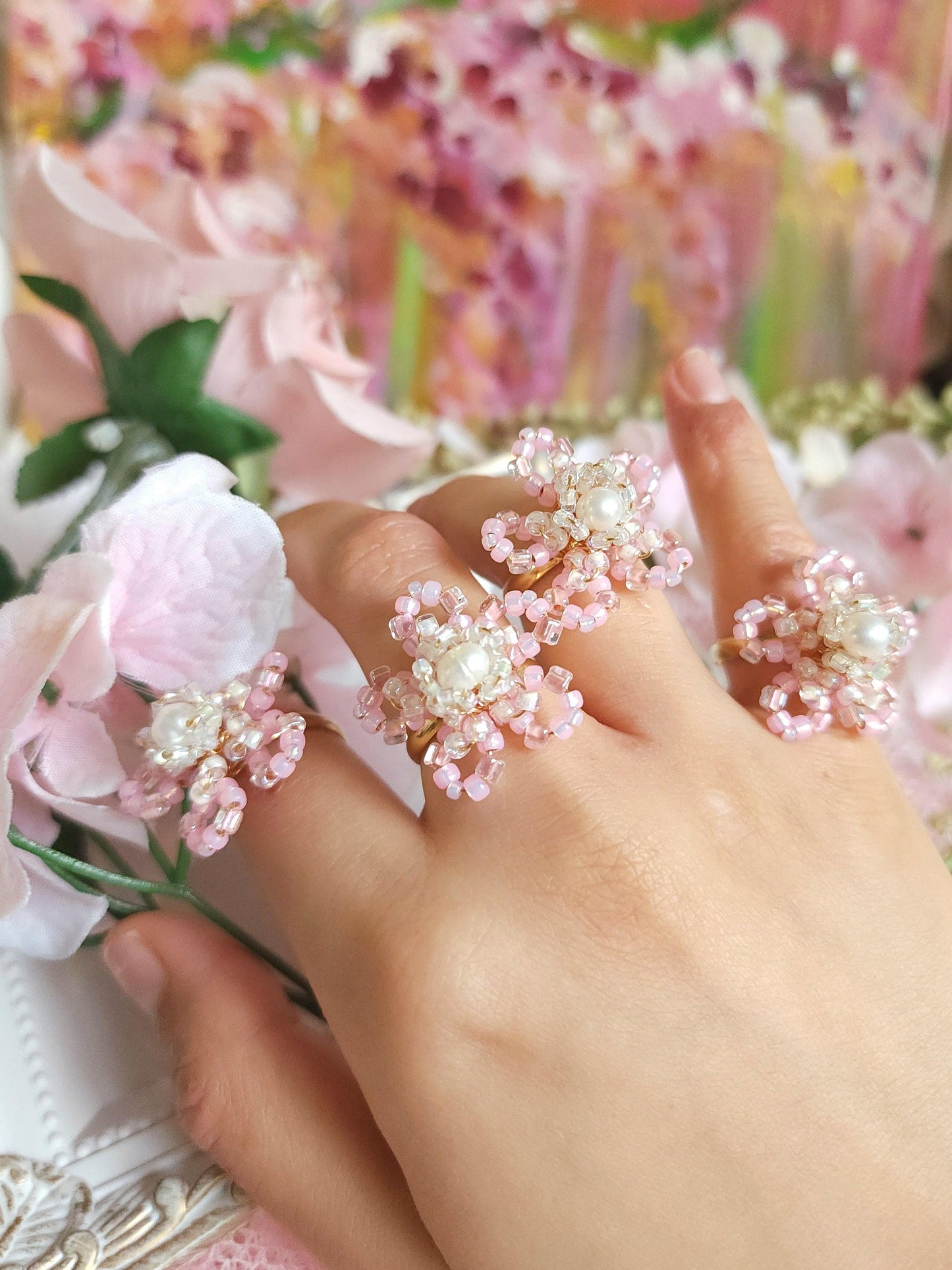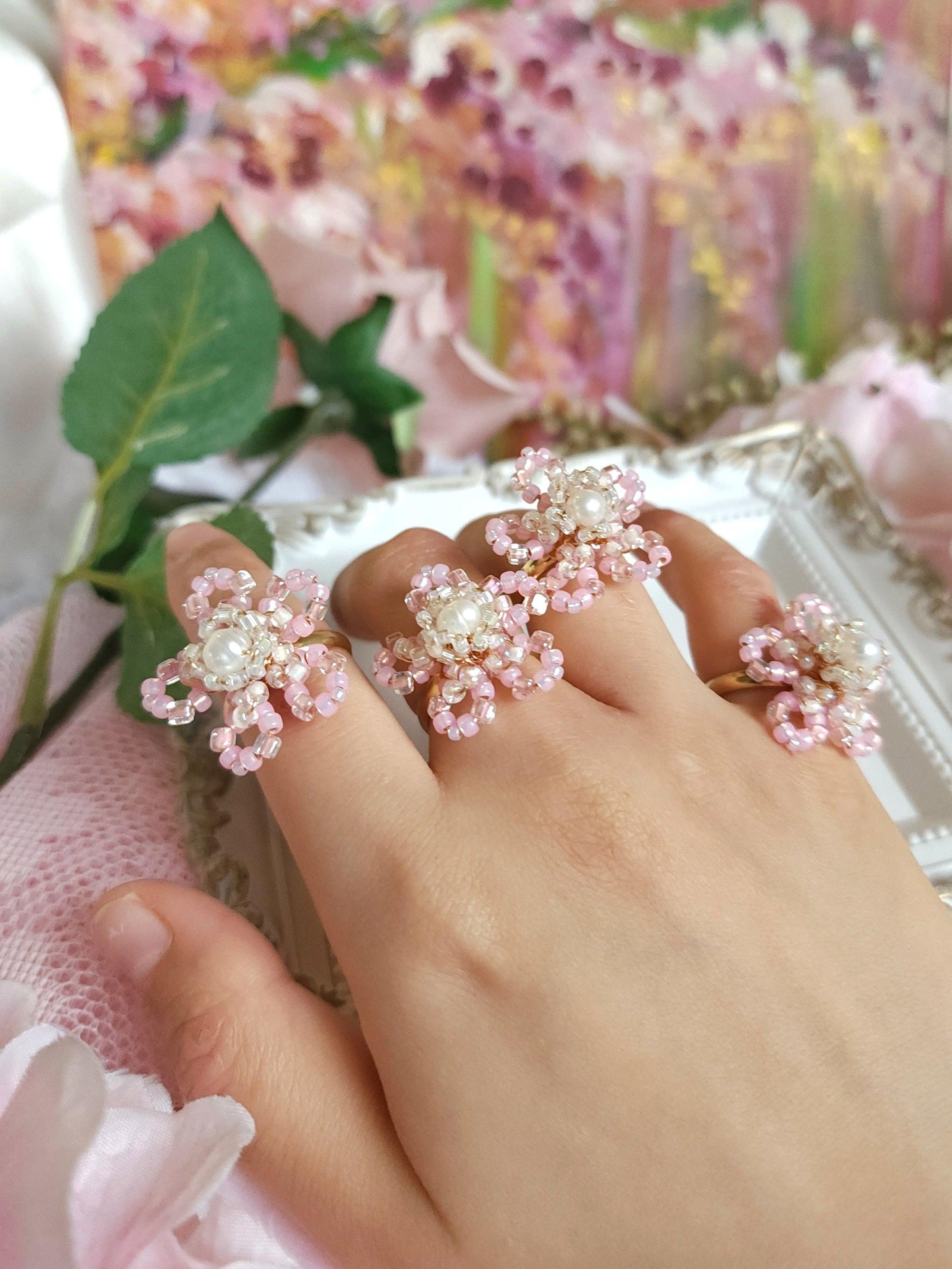Discover the beauty of handmade French-beaded jewelry. Each piece features delicate, three-dimensional floral designs created with wire and tiny glass seed beads, shaped into petals and forming blooms that are great accessories to any wardrobe. Perfect for lovers of unique, romantic, and nature-inspired jewellery.